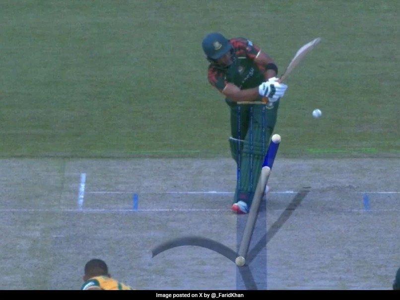 The umpire raised his finger following a strong appeal by the South Africans, and the ball was deemed dead. Bangladesh reviewed the call and DRS showed that the ball wouldn’t have hit the stumps, hence the on-field umpire had to reverse his decision.